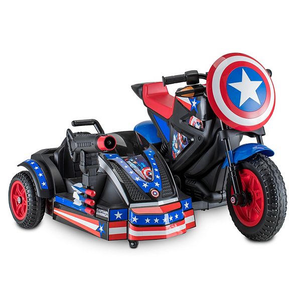 Marvel Avengers Assemble Captain America Motorcycle 12 Volt Side Car Ride On Kidtrax Youtube